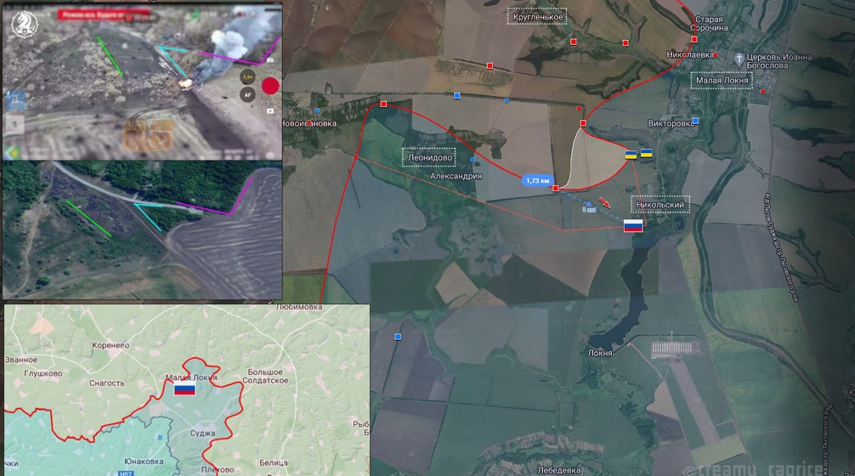 На Курском направлении, по данным геолокационных кадров, опубликованных 20 января, российские войска продвинулись на 1,73 километра к юго-западу от Малой Локни в направлении Никольского.