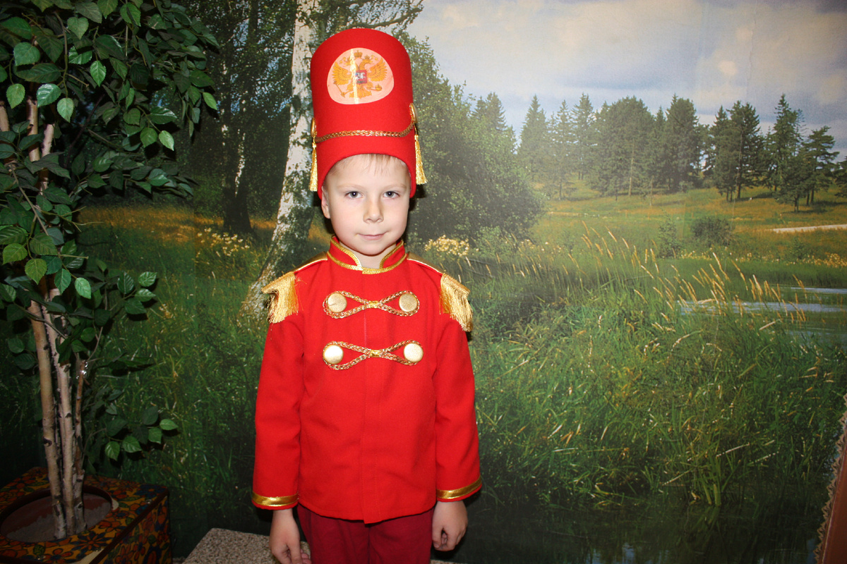 Костюмы для детского сада. Использовались и в новый год, в постановке "Щелкунчика" и на патриотические мероприятия. Ткань - габардин. Яркая, легко шьется, а самое главное - неубиваемая. Воротник-стойка. На кнопках. Декоративные застежки - плоские пуговицы, обтянутые парчой и тесьма в виде косы, закрепленная на одной пуговице, и надевающаяся на другую. Кивер из изолона, обтянут габардином. В качестве подкладки тоже габардин. Украшен золотой тесьмой и кистями. Эполеты - основа изолон, обтянут золотой парчой, украшен кистями. Такие костюмы - долговечный вклад. Они в отличном состоянии за счет качественных тканей и надлежащем уходе, конечно. За несколько лет образ гусара примерили на себя множество мальчишек. А родители пополнили свой фотоархив. Эти костюмы можно взять в прокат.