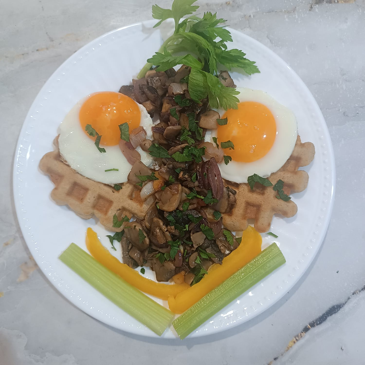 Всем привет! Сегодня это снежное и морозное утро я встретила во всеоружии - хорошей дозой белка и дофамина на завтрак ) Я готовилась, потому что прогноз это обещал и в этот раз гидромет угадал ) Не знаю, почему коммунальщики так не делают? ) не готовятся, зная о грядущих неблагоприятных погодных условиях ) Но вернёмся к запланированному завтраку ) Луковые вафли хороши , как основа для белка или под белок В абсолютном большинстве случаев вафли у меня (были) творожные, овсяно-творожные, тем интереснее было приготовить другие ) без творога Вот они, на 2 порции по 2 штуки больших: Мука овсяная -- 4 ст.ложки