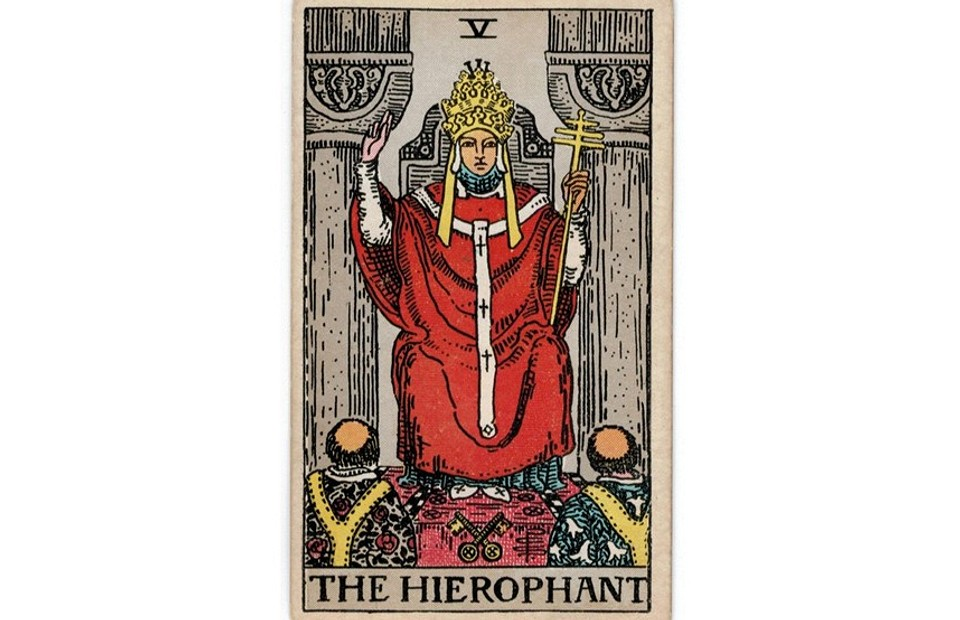 Уже не помню, у кого из авторов по исследованию Таро встречала «официальную должность» Иерофанта в иерархии Карт: Magister Arcanorum – Учитель Арканов. Мне кажется, это очень красиво звучит. Кстати, в римской традиции статусу Иерофанта соответствовал статус Великого понтифика (лат. Pontifex Maximus, то есть «Великий строитель мостов»). Чем это не аллегория на мост, который соединяет богов и людей? Мостом, конечно же, служило духовное лицо – Pontifex Maximus, верховный жрец государства, высшая из возможных жреческих должностей в Древнем Риме. В обязанности Великого Понтифика входило интерпретировать различные предзнаменования и доносить до народа волю богов. Должность была очень влиятельной, ведь фактически такому человеку подчинялось всё духовенство Рима. Позже, уже в христианскую эру, Великими понтификами стали именоваться римские Папы, что дает основания считать должность понтифика самой древней за всю историю Европейской культуры, так как её функционирование по сути никогда не преры