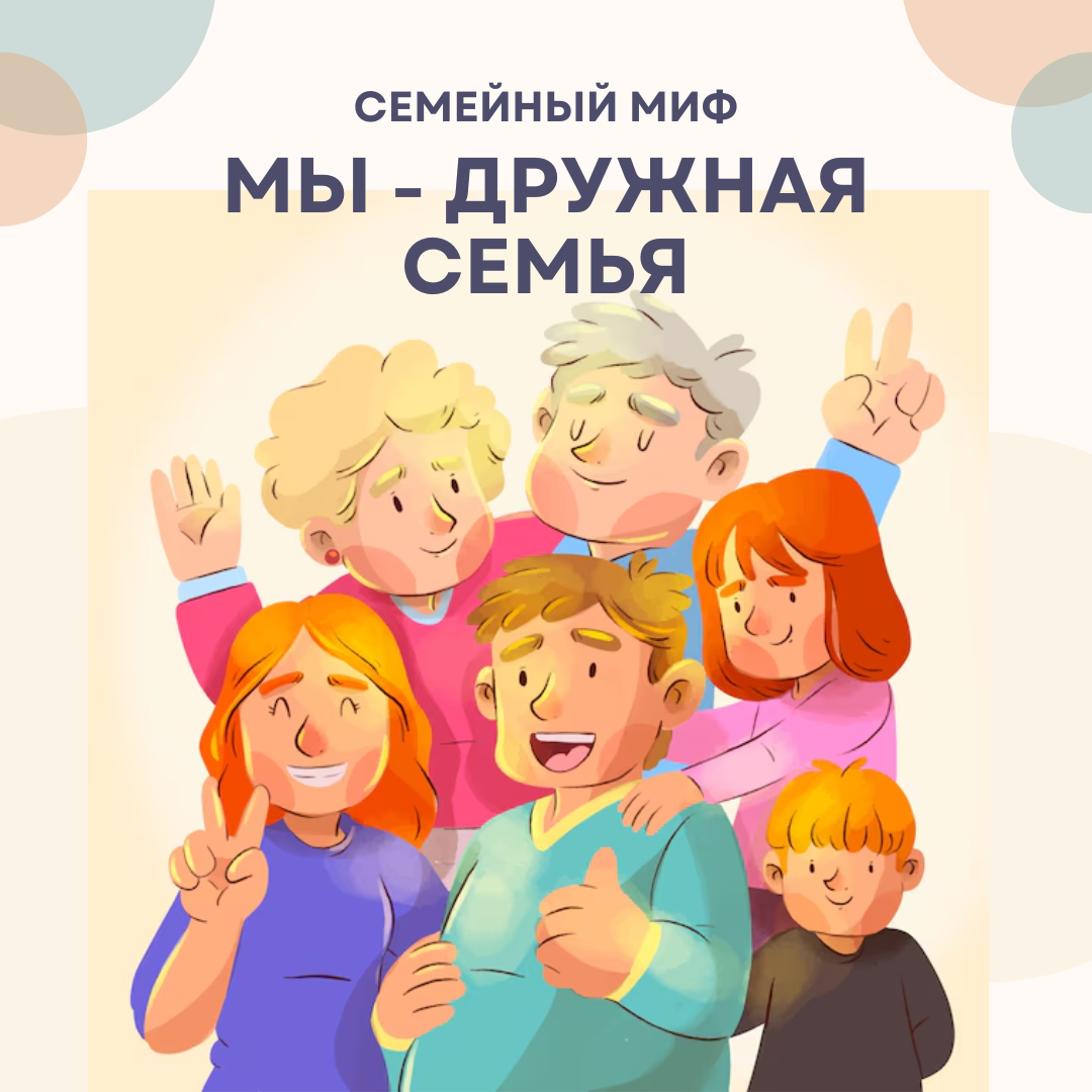 Этот миф считается самым "популярным" и встречается во многих семьях России. Сплоченность, дружба, счастье, “в единстве сила” и “Один за всех, все за одного” - такой девиз семьи, которая живет в этом мифе. В таких семьях принято испытывать к родственникам любовь, нежность и благодарность. И такие чувства нормальны, в функциональной семье они будут в любом случае. Однако невозможно постоянно находится в состоянии бесконечного счастья, ведь все люди испытывают раздражение и злость, страх, отвращение. В каждой семье могут быть конфликты, недопонимания и обиды.