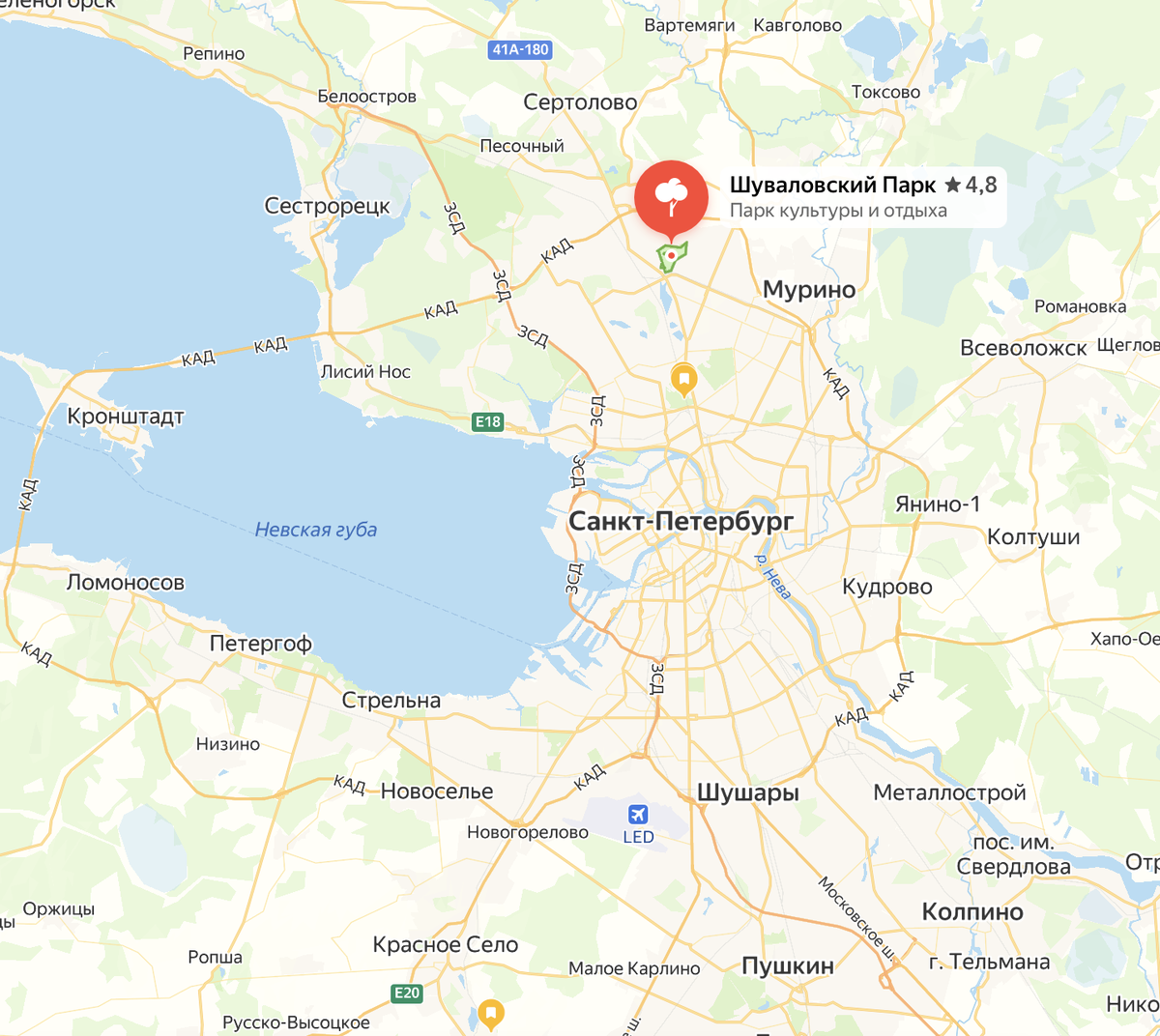 Шуваловский парк расположен в Парголово, площадь 142 га. Находится далеко от метро, пришлось несколько остановок проехать на трамвае и потом пройти немного пешком. Мы с Аней ехали с Озерков, хотя ближе всего там станция метро Парнас, но я смотрела разные варианты и получилось так, что Просвет или Озерки для старта удобнее.