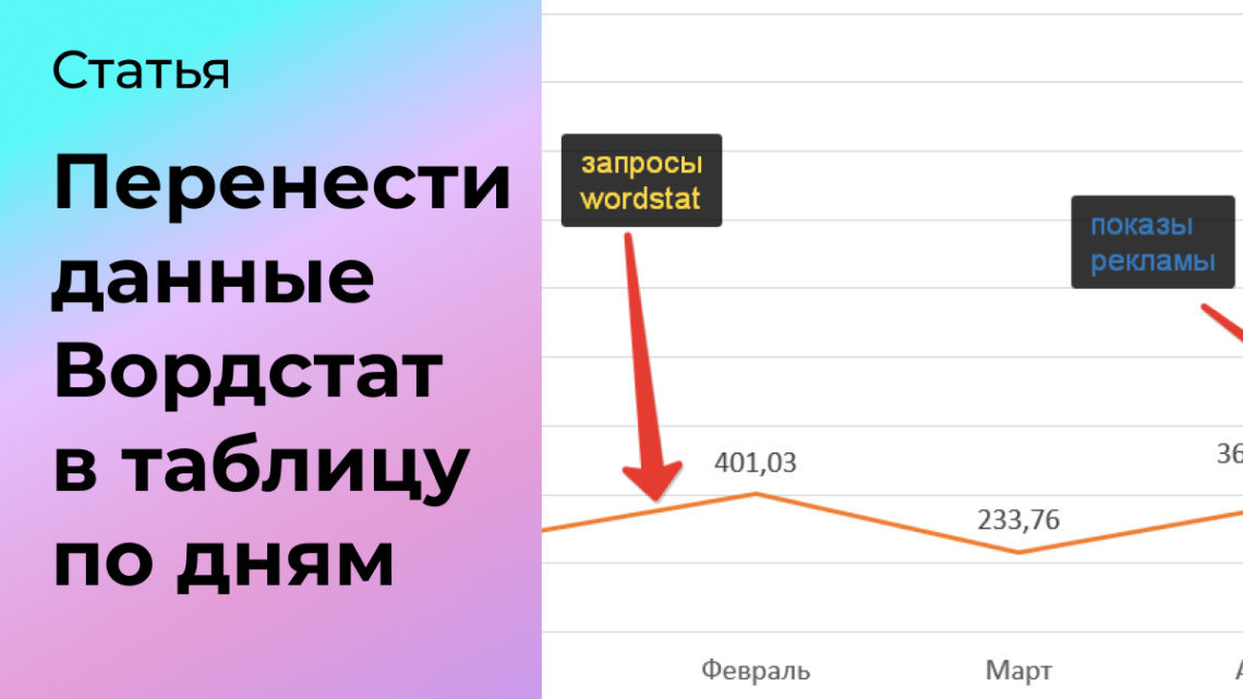 Представьте себе, что ваша кампания “взлетела” — рост числа показов, охват и лиды на высоте. Но как понять, действительно ли это результат ваших действий или просто удачное стечение обстоятельств? Сравнение динамики по запросам и показам рекламы позволяет ответить на этот вопрос, а также скорректировать стратегию. В статье расскажу, какие формулы я использую, когда нужно быстро перенести данные из Вордстат в таблицу, чтобы сравнить динамику по запросам Вордстат с показами рекламы. Больше полезных материалов можно найти в моём блоге. В нём я регулярно делюсь бесплатными шаблонами и инструкциями, которые существенно облегчают жизнь маркетолога. А ещё больше интересного в моём Телеграм. Подписывайтесь! Открываем Вордстат и скачиваем динамику запросов по неделям в Гугл таблицу. Раньше для этого нужно было выделить весь диапазон и скопировать, сейчас – просто скачать готовый документ. Удаляем лишние данные. В дополнительном столбце ставим актуальную дату, например, у меня – 29.06.2020. Про
