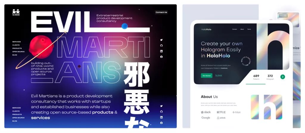 Множественные градиенты идеально подходят для уникальных дизайнов, где требуется сложность цветовых переходов и оригинальность визуального представления.