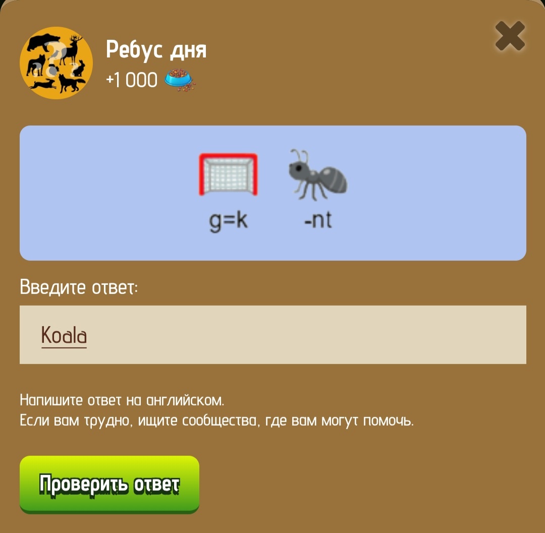 Ребус дня в ZOO от 21 января 2025 Ответ: Koala Расписания подарочных коробок выкладываем регулярно в нашем телеграм канале - ТУТ Ответы на загадки и ребусы нужно вводить в разделе "Задания". Zoo - это игра, где нужно развивать свой зоопарк и собирать игровые монеты. Улучшаем животных, вступаем в альянс и выполняем задания.