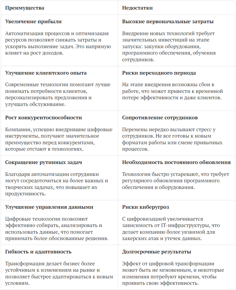 Преимущества и недостатки цифровой трансформации