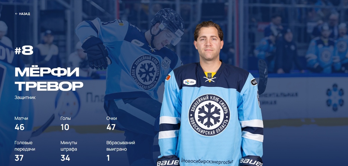 Тревор Мерфи из ХК «Сибирь» стал лучшим игроком недели Чемпионата КХЛ