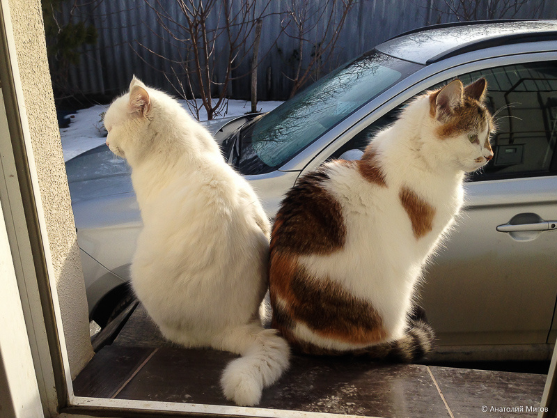 Ночью проснулся от кошачьих криков. Сплю с открытой форточкой, городок маленький, обычно по ночам тишина как в деревне. А тут прямо под окном кошачьи разборки. Как будто не январь сейчас, а март, когда коты напрочь теряют всякое чувство меры и страха. Пришлось вставать и закрывать форточку, а то у них это обычно надолго. Сядут друг напротив друга и могут час орать дурными голосами, пока кто-то не отступит либо не полезет в драку. А утром встал, смотрю у кошки Мамаши Че глаз подбит. Ну тут я все и понял. Это не коты орали, а наши кошки выясняли, кто из них круче. В холодные зимние дни и ночи наши кошки Маруся и Мамаша Че любят спать на теплом полу в ванной комнате. Ничего, что жёстко, зато тепло. Лена, перед тем, как спать ложиться, закрыла дверь в ванную. Мамаша Че у нас дева бесцеремонная, соскучится ночью по человеческому общению и начинает рваться в спальню. Просунет лапку под дверь и пытается её открыть. При этом пыхтит, сопит и упорствует. Иногда ей это удается, тогда она забира