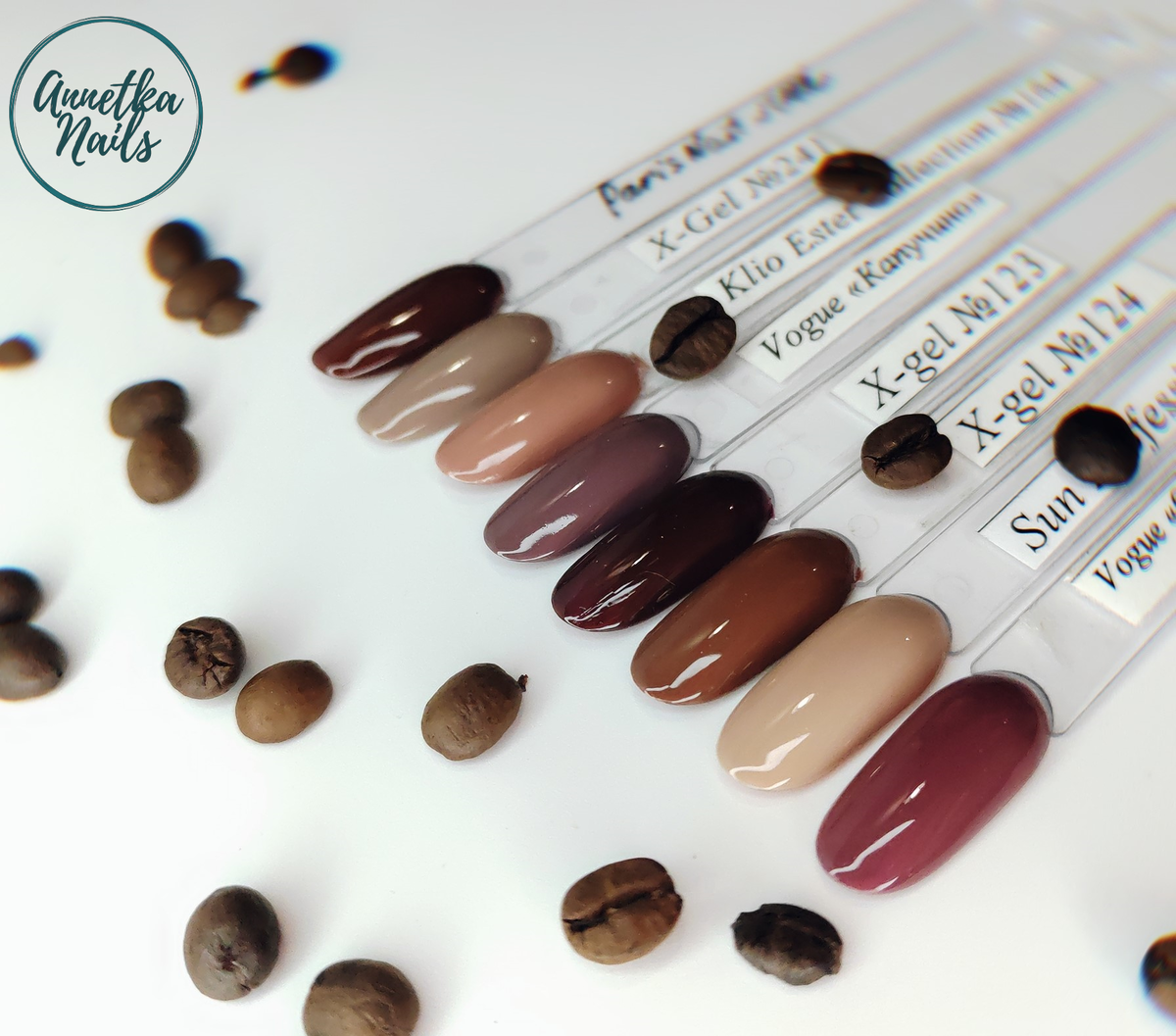 Как Вы помните из статьи - цветом 2025 года стал цвет под названием: Mocha Mousse. В моей палитре есть 8 похожих на этот оттенок цветов гель-лака. Специально подобрала цвета без блёсток, и без каких либо других эффектов. Как Вы видите цвета отличаются по оттенкам от приглушённых фиолетово-коричневых до светло бежевых. Почему я сделала такой разброс подбирая цвета? Потому что все мы разные и каждый человек видит цвет по разному, и у каждого вызывает разную ассоциацию! Представлены цвета: Какие оттенки гель-лаков в Вашей коллекции больше похожи на цвет 2025 года? Делитесь в комментариях оттенками гель-лаков!