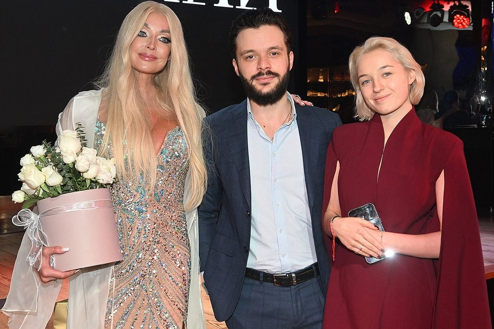 "Анастасия Волочкова решила отойти от тяжеловесных платьев в пол и предпочла короткий наряд с камнями и с глубоким декольте. С прилизанными прическами и пучками звезда тоже распрощалась: на ней был длинный блондинистый парик. Образ Волочкова дополнила прозрачной накидкой. Именинницу сопровождал ее новый кавалер, партнер по шоу «Одержимость», Марчел Абаби, который появился во всем черном".