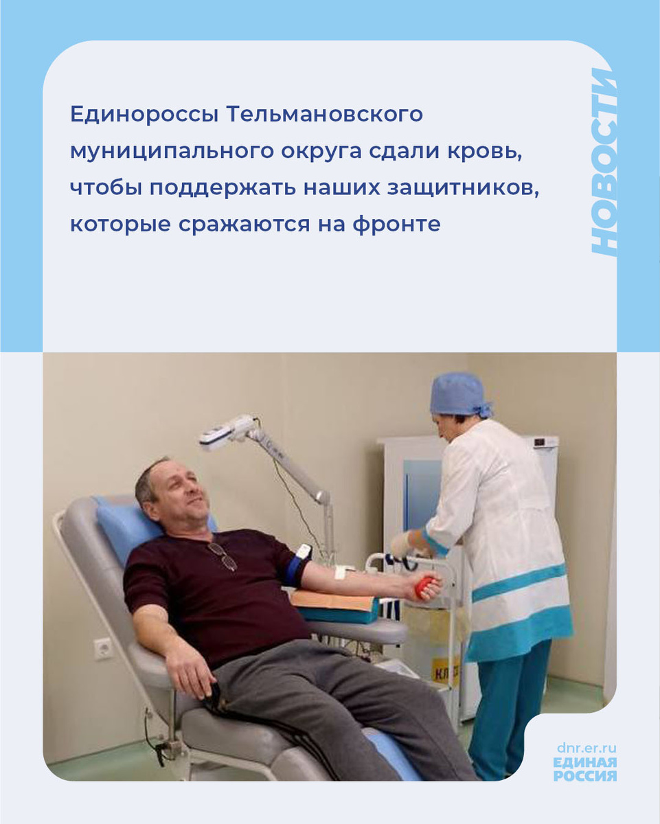 Считает секретарь Тельмановского местного отделения Единой России Наталья Великодная. Единороссы Тельмановского муниципального округа на регулярной основе сдают кровь и становятся донорами, чтобы поддержать тех, кому это необходимо. Очередную донацию они провели, чтобы поддержать наших защитников, которые, не жалея себя, сражаются на фронте. #ЕРДНР #СдайКровь #СпасиЖизнь #ЕдинаяРоссия