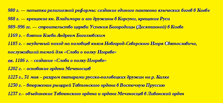 1185 г. – неудачный поход на половцев князя Новгород-Северского Игоря Святославича, послуживший темой для «Слова о полку Игореве»
