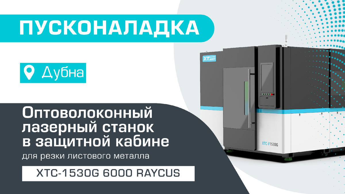В январе 2025 года нашей компанией была произведена поставка и пусконаладка оптоволоконного лазерного станка в защитной кабине XTC-1530G/6000 Raycus в Дубне. Дубна — город, где реки словно линии чертежа очерчивают простор для науки и технологий. Этот наукоград на Волге стал местом, где рождаются великие открытия. Именно здесь, среди пейзажей, пронизанных духом прогресса, расположено предприятие нашего клиента, которое создаёт подъёмно-транспортное оборудование для развития будущего. Во время пусконаладки оптоволоконный лазер был распакован и установлен в рабочей зоне. После выставления станины по уровню к ней был прикреплен сменный стол, затем был установлен портал станка. Была выполнена регулировка координатной системы X перпендикулярно Y, монтаж сервомоторов и укладка кабелей к шкафу управления, были собраны компоненты кабельной сети, системы охлаждений и аспирации. Был собран каркас защитной кабины, прикреплены боковые и лицевые панели. Проведено опробование станка и его юстировка.