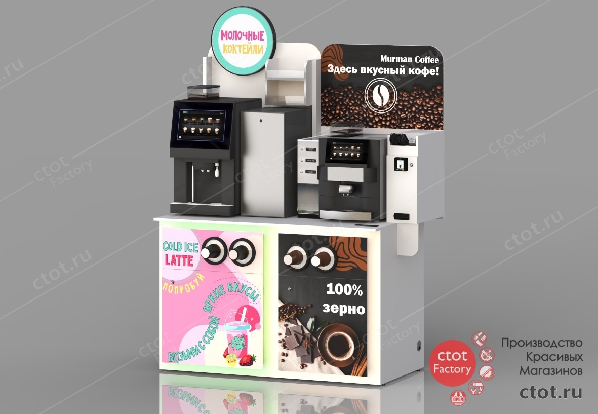 Друзья, сегодня мы рады представить вам новый проект фабрики Ctot Factory - двойной компактный модуль, который уже отправился в г. Мурманск. Модуль состоит из двух секций: кофе-модуля и модуля для автомата молочных коктейлей.