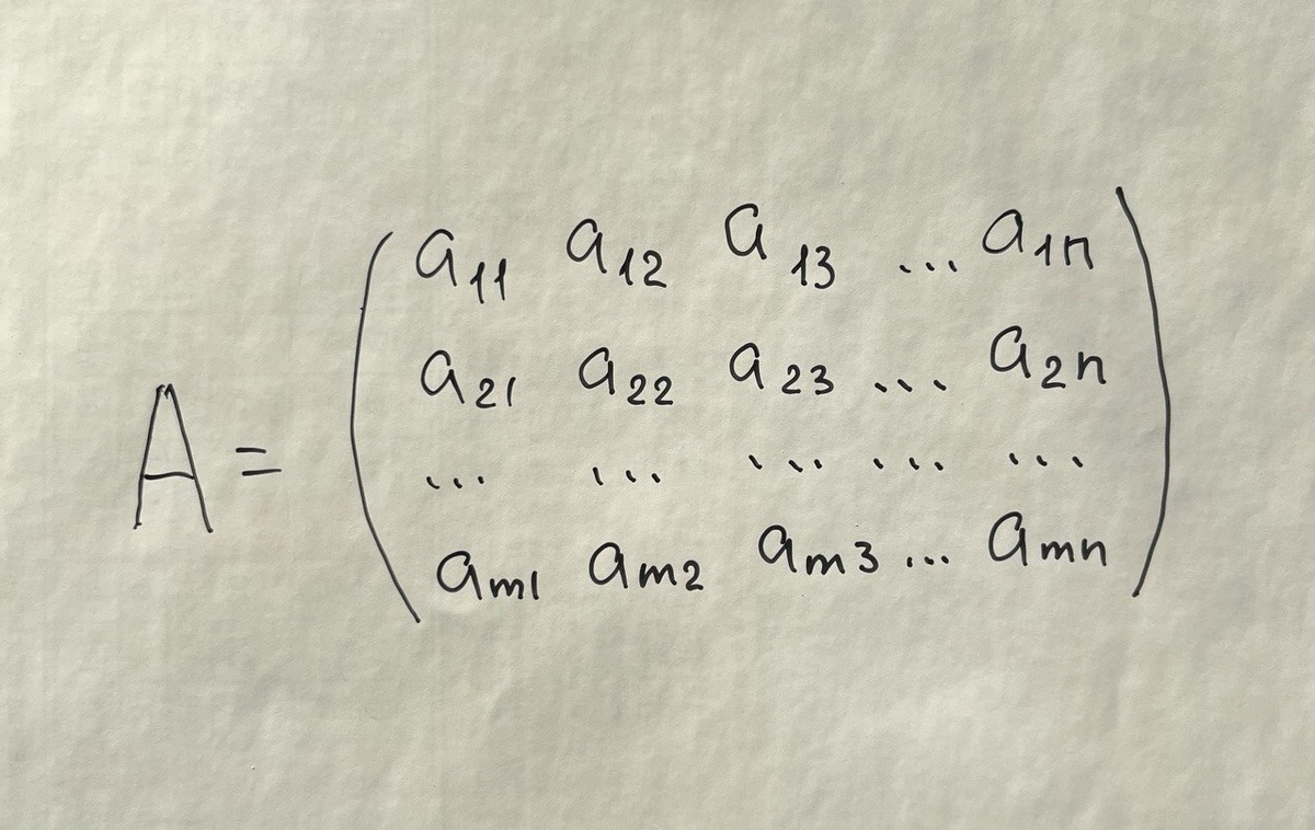 Начнём с определения, а далее разберём простыми словами. Математической матрицей называется прямоугольная таблица, содержащая m строк и n столбцов в ячейках которой расположены числа или некоторые математические выражения, которые называются элементами матрицы. Сама матрица обозначается заглавными буквами латинского алфавита A, B, C, D и так далее. Элементы матрицы обозначаются соответственно прописными буквами латинского алфавита a, b, c, d и так далее со специальным индексом, о котором мы поговорим дальше. Как записывается матрица? Обычно запись матрицы выглядит следующим образом: Сложно? Давайте разбираться, так, чтобы было понятно. Мы привыкли к таблицам вида "в клеточку"... Например, таким В ячейки такой таблицы заносятся некоторые данные, которые подвергаются дальнейшей обработке. Обозначим их прописной латинской буквой a. А так как все данные в ячейках таблицы будут разные, то зададим каждой ячейке свой индекс для а, который будет указывать на номер строки и номер столбца. Можно
