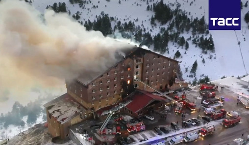 Пожар вспыхнул на горнолыжном курорте Карталкая в Турции ночью 21 января. В настоящее время известно о 10 погибших и 32 пострадавших, сообщает корреспондент агентства «Минск-Новости» со ссылкой на ТАСС. Пламя разгорелось около 3:30 на четвертом этаже 12-этажного строения. В общей сложности в момент происшествия в отеле пребывали 234 отдыхающих. Обновленными данными поделился глава МВД республики Али Ерликая. Ранее сообщалось, что шесть человек скончались, 31 — травмированы, двое из которых находятся в тяжелом состоянии. По словам губернатора провинции Болу Абдулализа Айдына, спасателям почти удалось взять пожар под контроль. Причины и обстоятельства инцидента устанавливает прокуратура. Видео ТАСС/ Reuters/ Anadolu Agency