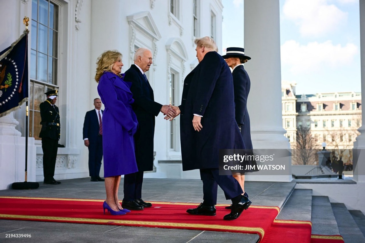Церемония проводилась в помещении в связи с холодной погодой в Вашингтоне, возможно, поэтому первые леди - уходящая и новая были одеты в теплое пальто с поясом. Джил Байден - в мягкое пальто с меняющимся цветом от густого синего до фиолетового в зависимости от освещения, а Мелания Трамп - в структурированное темное пальто, шляпу-канотье, под поля которой она прятала глаза, и черные лодочки. Наряд Мелании смотрелся довольно строго, напоминая и военную форму, и униформу стюардессы, особенно с учетом ее выправки. Согласно неписанной традиции первые леди в этот важный день обычно выбирают заметные оттенки одежды с некоторым праздничным уклоном, насыщенно пастельные или приглушенно яркие. Как это делают и королевские особы, чтобы быть заметной, но не кричащей. Например, для первой инаугурации та же Мелания Трамп выбрала ставший уже культовым небесно-голубой костюм. Что-то подобное предполагалось и в этот раз, на канале даже прошло небольшое голосование. Но вопреки ожиданиям Мелания появил