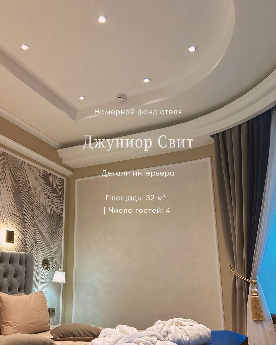 Число гостей: 4 Превосходная звукоизоляция в номере и эксклюзивный дизайн не оставят вас равнодушными. Ванная комната в сером мраморе с тропическим душем и наборы косметики от Valentin Yudashkin в дополнение ко всем прочим удобствам, относящимся к номерам повышенной комфортности, стильные кресло в рабочей зоне и классический диван — мы продумали все аспекты идеального отдыха.