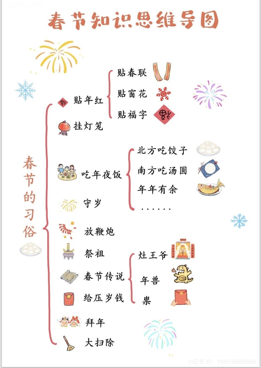 Заглавие рисунка 春节知识思维导图