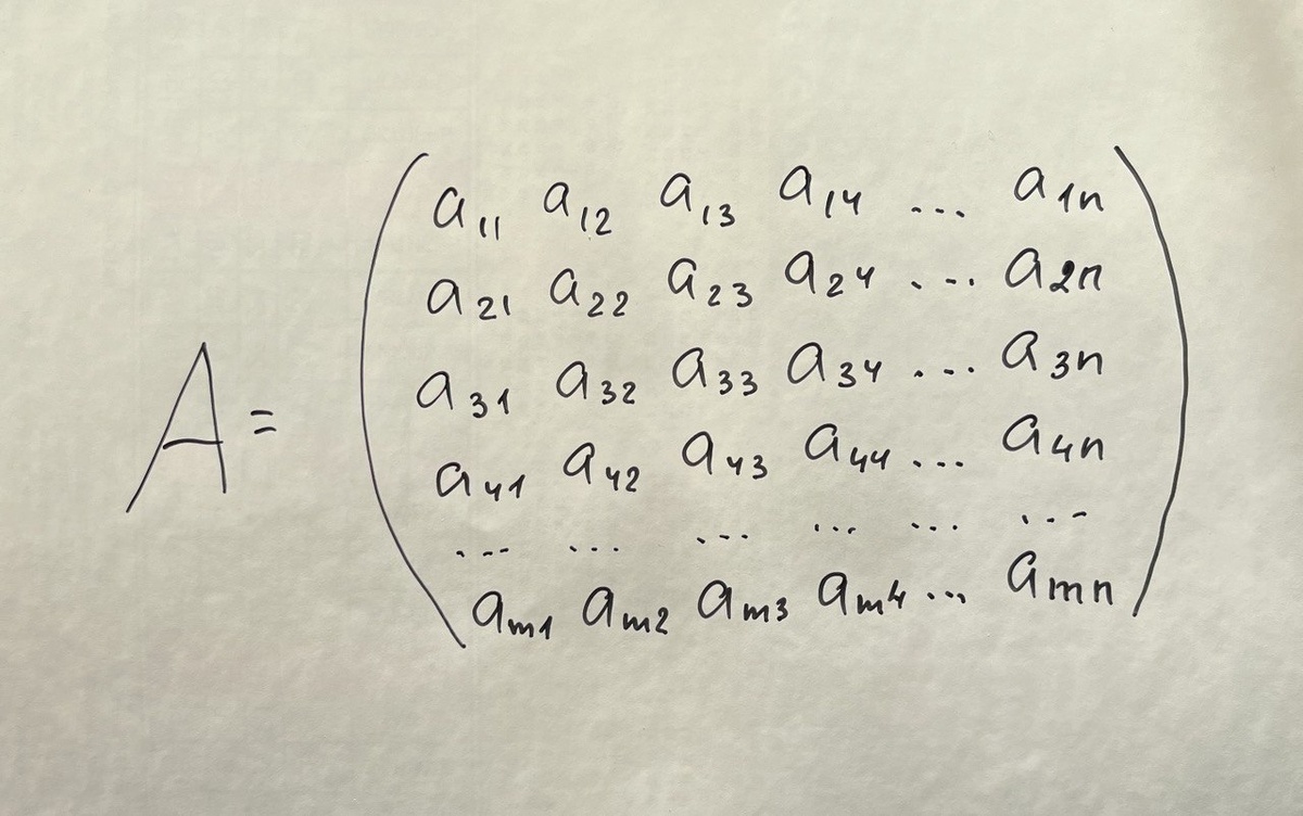 Но математики - люди до мозга костей рациональные. Расписывать такие таблицы матриц - это долго. Поэтому они решили ещё упростить запись. Для этого нужно номера строк объединить одной буквой i, а номера столбцов буквой j.