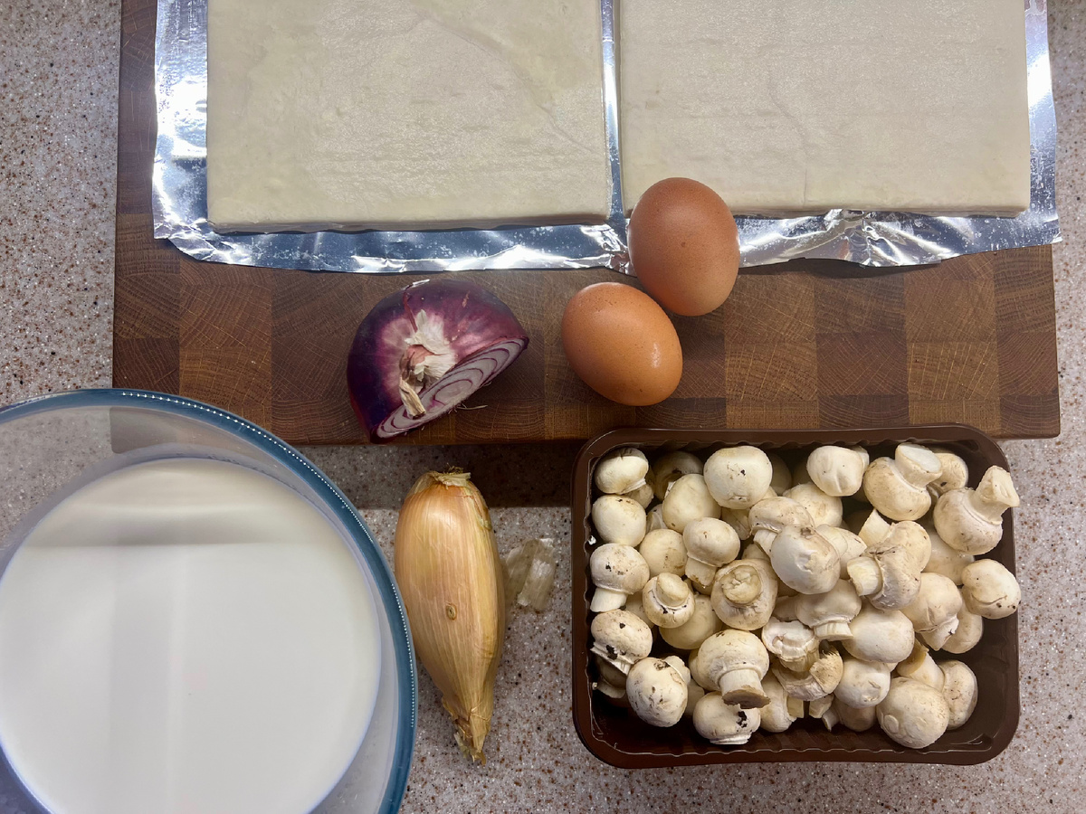 Пироги - это прекрасно. Кто тут поспорит? Диетологи, ЗОЖники и остальные осознанные товарищи тоже стали благосклонно к ним относиться. Во-первых - пирог пирогу рознь. А, во-вторых- умеренность - наш друг. Если не переедать, то вообще красота и прелесть. Ну так вот, сегодня у нас почти пирог. Недокиш и пережульен (не мышонок, не лягушка, а неведома зверушка), ага. Почему недо? Потому что я поленилась и не сделала песочное тесто. Замороженное слоеное - мой верный друг и соратник. Почему пере? Ну вы видели размеры жульена? А у нас ого какой. Ну и со всякими нюансами и смешениями стилей. В общем, меньше слов, больше дела и вперед. А то кто будет готовить? Пушкин? (хехе) Первым делом достаньте тесто из морозилки. Как правило, в упаковке два пласта. Я использую один и раскатываю его потоньше (да да, после разморозки). Мне так больше нравится, его тогда как-будто и нет (фигушки). Пока тесто отогревается займитесь начинкой. Возьмите лук (какого угодно сорта) и шампиньоны. Я специально купил