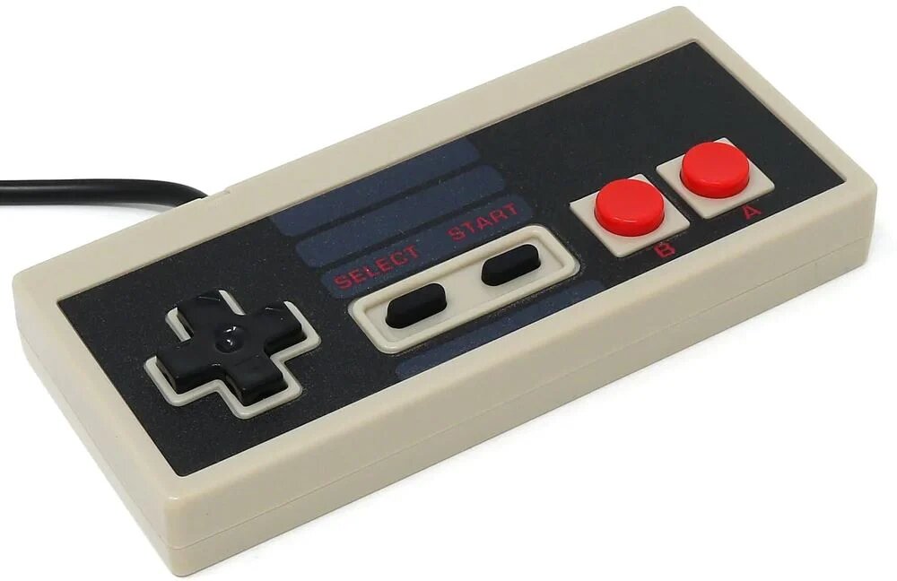 - Nintendo Entertainment System (NES): прямоугольный контроллер с двумя кнопками (A и B), крестовиной (D-pad) и кнопками Start и Select. Он стал стандартом для игровых устройств на долгие годы.