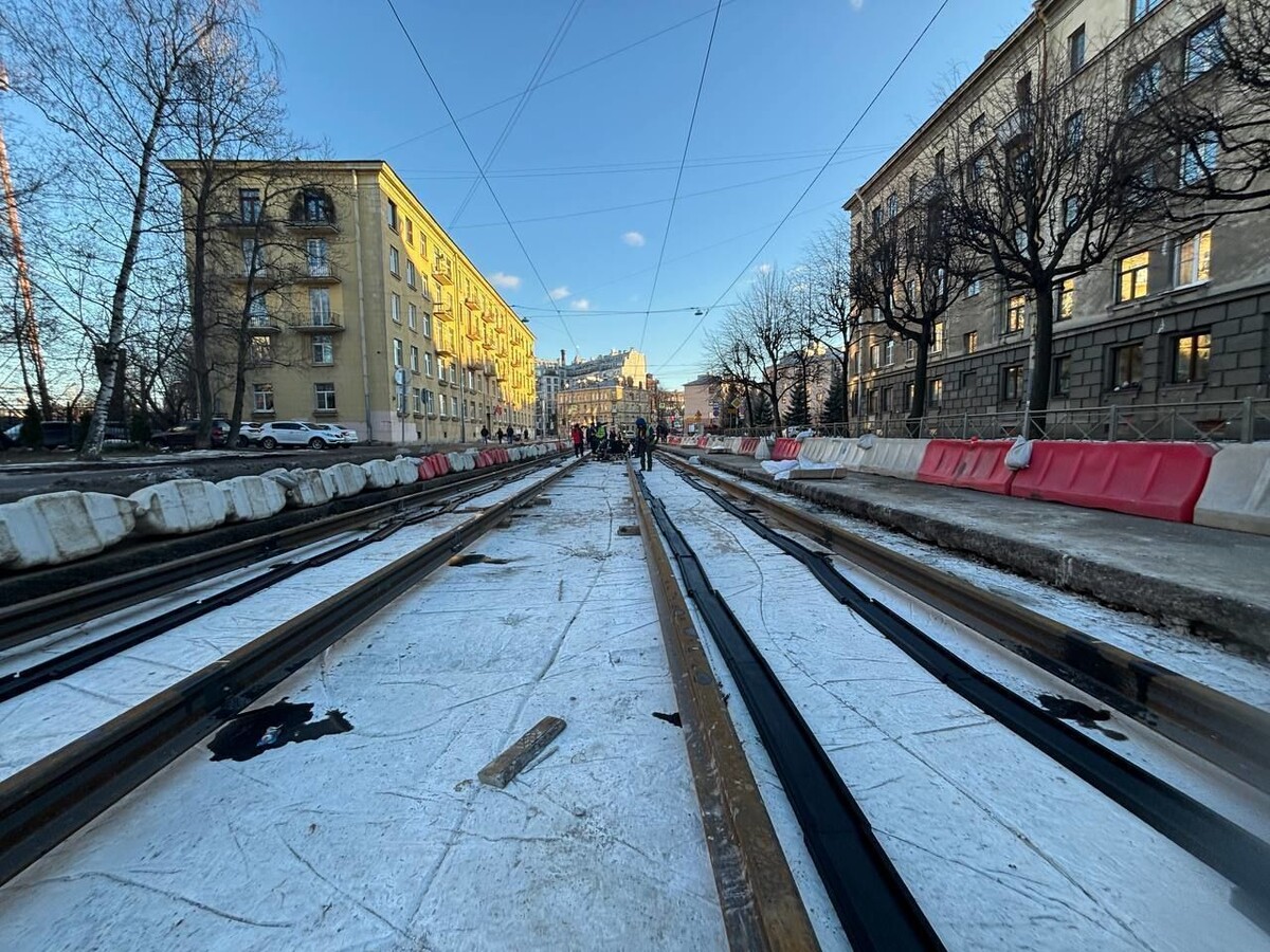 В Петербурге на улице Льва Толстого продолжается ремонт трамвайных путей