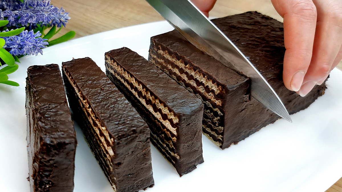 Вафельные тортики-пирожные с шоколадно-масляным заварным кремом к чаю