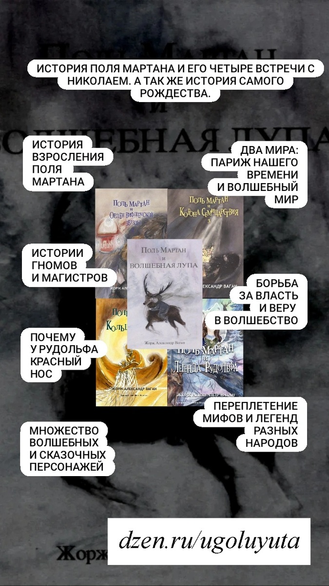 Делюсь прочитанныем за новогодние праздники. Это цикл из 5 небольших книг про Поля Мартана. О том как пересекается наш и волшебный миры. И в обоих мирах не все празднично и просто - тут и борьба за власть, и войны, и жертвы. И все это основано на мифах и легендах разных народов.