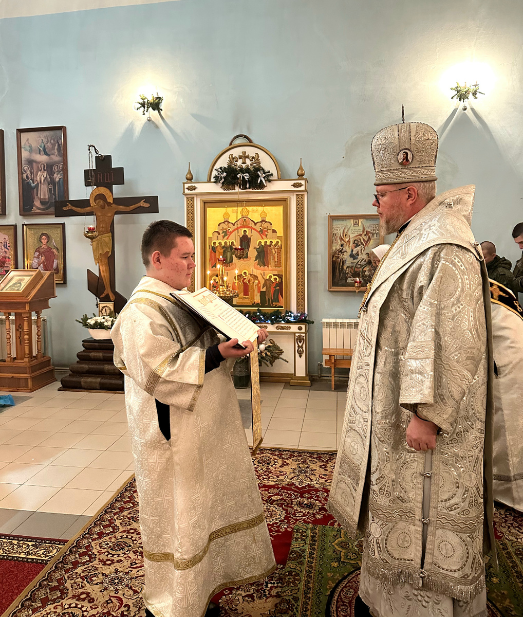 9 января 2025 года, в четверг Седмицы 29-й по Пятидесятнице, в попразднство Рождества Христова, епископ Отрадненский и Похвистневский Никифор возглавил вечернее Богослужение в храме в честь Покрова Пресвятой Богородицы пгт.Мирный.