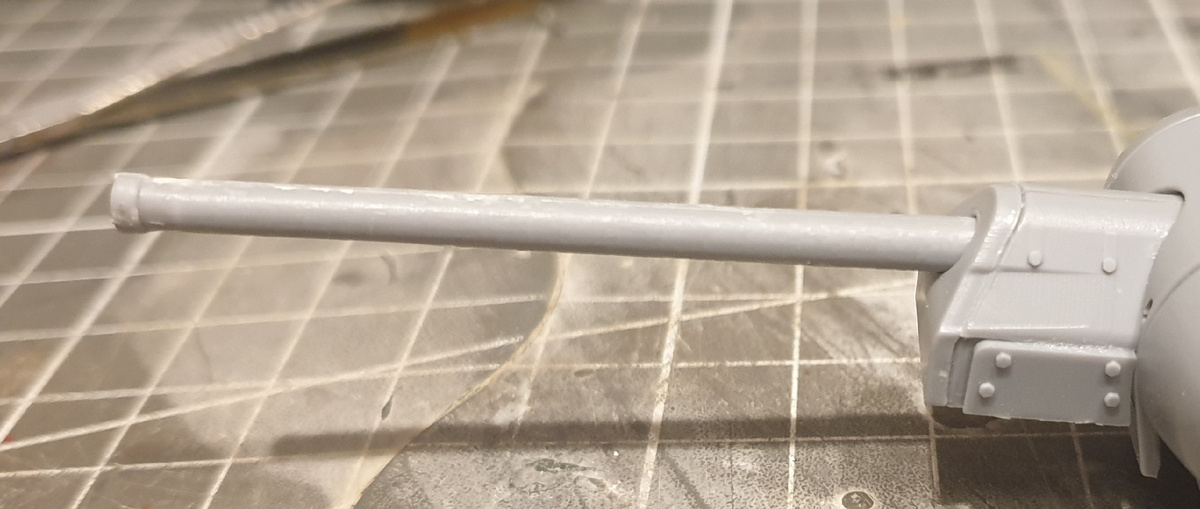 Приветствую вас, уважаемые подписчики и зрители! Сегодня мы будем собирать башню для модели танка Т-34. Для начала из двух половин собираем ствол, детали ствола соединялись не ровно, поэтому срезаем крепления, после удаления креплений детали соединились нормально, щели на стволе замазываем шпаклёвкой, а после высыхания шлифуем ствол мелкозернистой наждачкой. Маску орудия собираем из четырёх деталей, далее, устанавливаем ствол и приклеиваем детали по бокам, к собранной конструкции приклеиваем ещё одну деталь маски орудия. После потери Харькова, а затем риска потерять Сталинград ( в первом городе находился Харьковский тракторный завод (ХТЗ), а во втором Сталинградский тракторный завод (СТЗ)) в 1942 году производство танков Т-34 началось на Уральском заводе тяжёлого машиностроения (УЗТМ), мощностей литейных цехов, где отливали обычные башни "Гайки" не хватало, поэтому было принято решение использовать 10000-тонный пресс, для изготовления штампованных башен, так появились штампованные башн