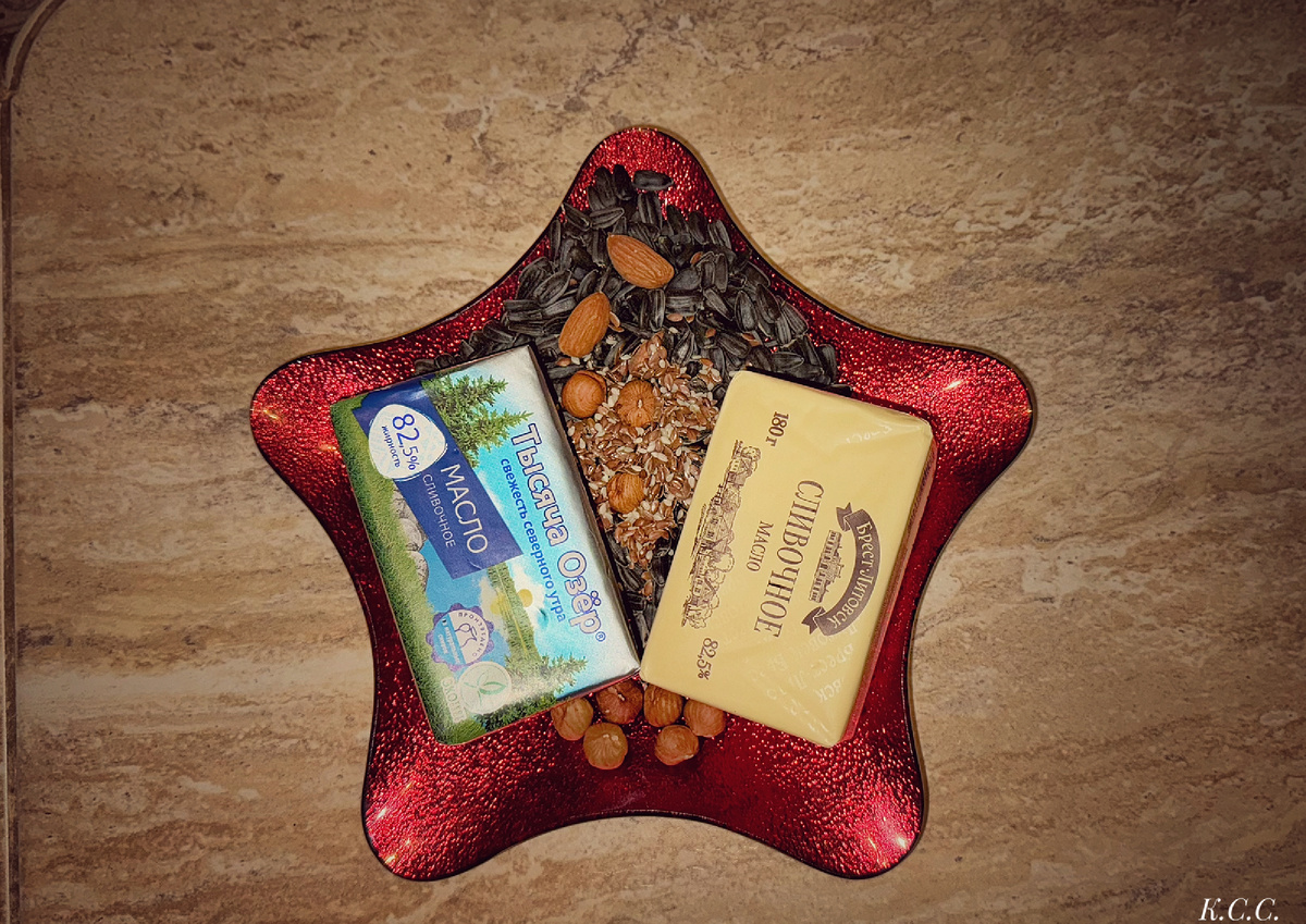 В городе возиться с салом не так удобно, как в деревне. Поэтому я решил снова использовать сливочное масло. Оно не только питательное, но и легко смешивается с семенами и орехами.