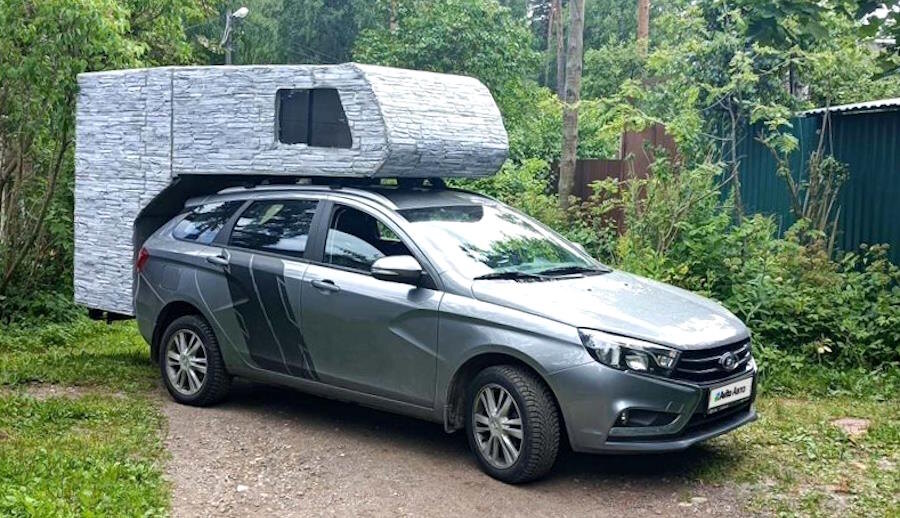 Житель Московской области выставил на продажу самодельный жилой модуль, который можно установить на «Ладу Весту», сообщает сайт Wroom.ru. Обычно подобные надстройки ставят на рамные пикапы, но в данном случае в качестве «шасси» используется универсал «Лада Веста». При этом, как уточняет продавец, модуль может подойти и для некоторых других моделей автомобилей — это зависит от их габаритов. Надстройка изготовлена из пеноплекса, стеклоткани и эпоксидной смолы — особо изящным дизайн конструкции нельзя назвать. Общая масса всей конструкции составляет примерно 85 кг, а крепится она на рейлинги и фаркоп. Внутри — никаких излишеств: автодомом это можно назвать с большой натяжкой. В модуле есть только спальное место шириной 1,1 метра и длиной 2,0 метра, «дачный» рукомойник, а также небольшой пластиковый стеллаж. Продавец утверждает, что это «шикарная вещь» для путешествий. Цена модуля достаточно скромная по сравнению с другими подобными надстройками — 90 000 рублей. А как на такую конструкцию