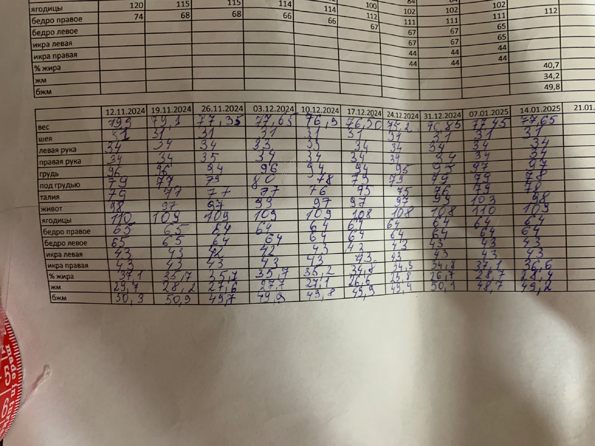 По сегодняшним замерам все конечно уже лучше, чем на той неделе, но все параметры еще в плюсе. Следовательно я закончила второй месяц немного набрав. Но после новогоднего застолья и поедания мной детских подарков это было ожидаемо. Присутствует отечность еще. Пальцы немного еще остаются сардельками.