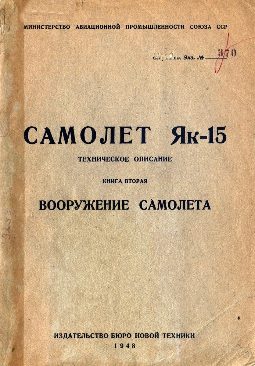 Техническое описание Як-15 книга 2 Вооружение самолета. Уникальное издание 1948 года.