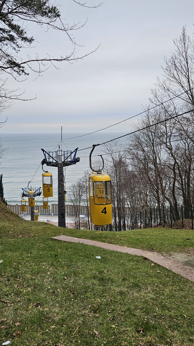 - Выходим на станции "Светлогорск 2". Сразу за ЖД вокзалом находится канатная дорога с жёлтыми вагончиками. Я мечтала на ней прокатиться, но именно в наш день она оказалась закрыта. Так что, уточняйте расписание на сайте. Стоимость билета 60₽.