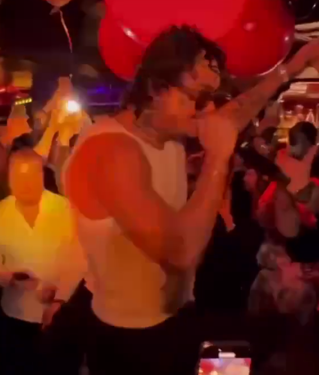 На сцене одного из ночных клубов Куршевеля Моргенштерн вышел в образе, который, по словам очевидцев, отражал его стиль: белая майка, чёрные брюки и заметная неустойчивость.