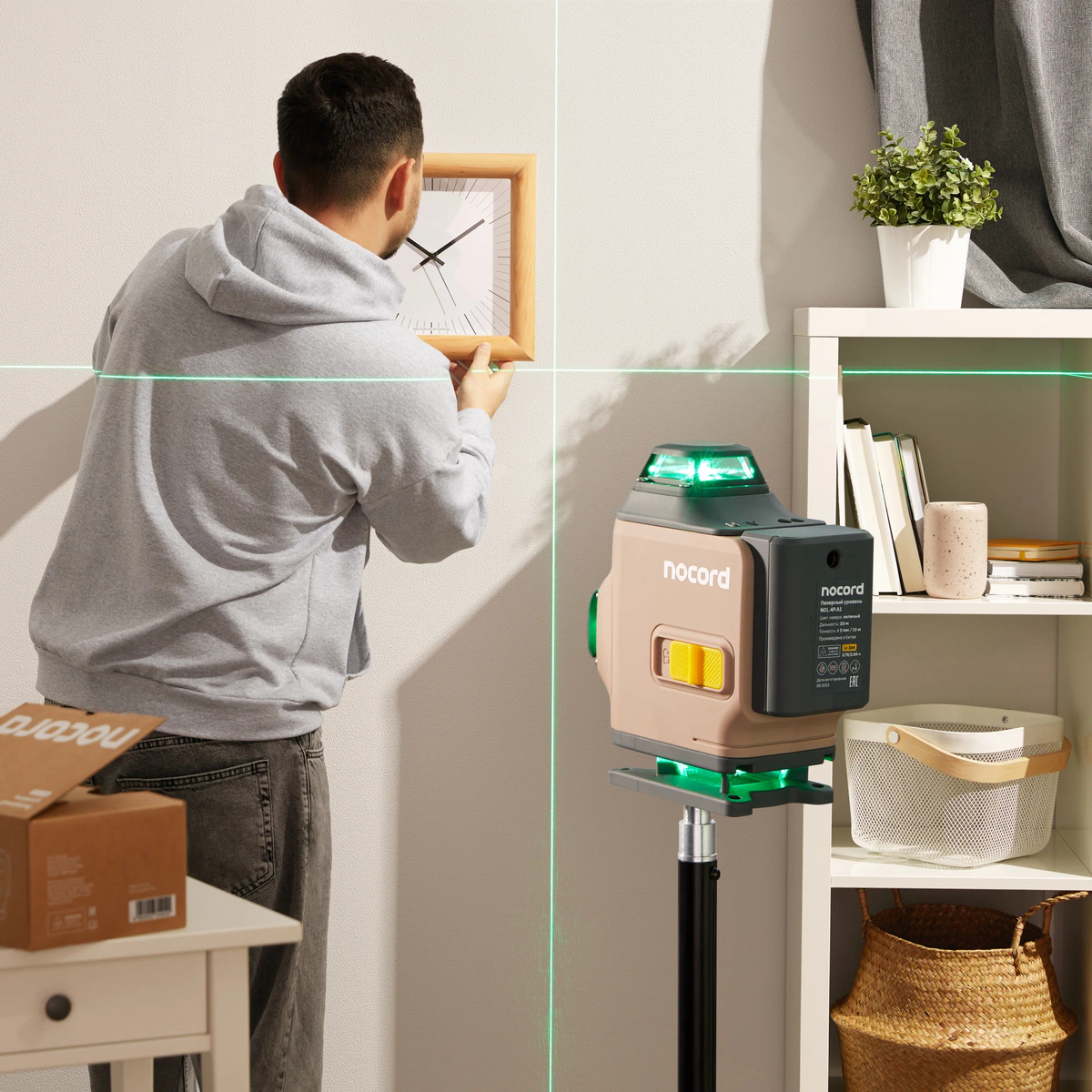 Если вы ищете надежный инструмент для ремонта или строительства, то лазерный уровень Nocord 4х360 может стать вашим идеальным помощником. Этот прибор создан для точной разметки и упрощения работы, будь то укладка плитки, монтаж потолков или установка мебели. Но действительно ли он так хорош? Давайте разберемся! 👇 Лазерный уровень Nocord 4х360 — это линейный нивелир с четырьмя лазерными плоскостями (2 вертикальные и 2 горизонтальные), которые проецируются на 360 градусов. Зеленый луч обеспечивает отличную видимость даже при ярком освещении, а функция автоматического выравнивания делает его незаменимым на неровных поверхностях. Устройство управляется сенсорно или с помощью пульта дистанционного управления, что добавляет удобства. Цена лазерного уровня Nocord 4х360 варьируется в зависимости от комплектации и магазина. Средняя стоимость без аксессуаров составляет около 4900–5700 рублей, а с полным комплектом — до 12 000 рублей. Этот лазерный уровень идеально подойдет: Однако профессионал