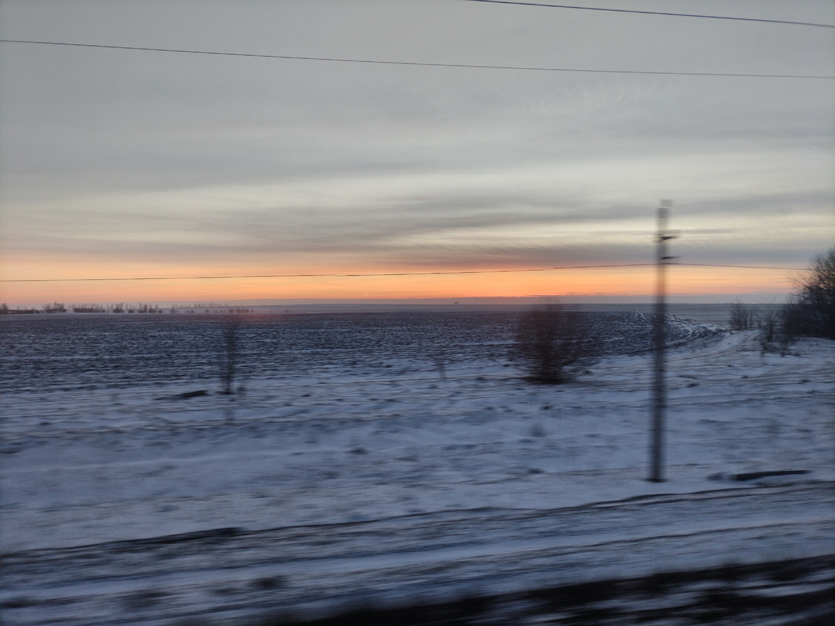 Правда когда из Питера выезжали, снегопад сильный был, но мороза уже тоже не было.