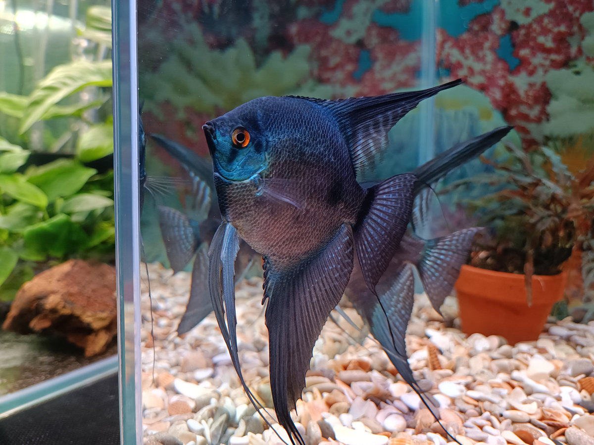 В следующем аквариуме плавали тёмные вуалевые скалярии (также от Анатолия)
