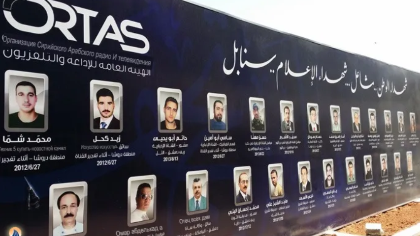 После захвата власти в Сирии я уже не вижу больше этот стенд. Вероятно, его убрали. Нечего помнить о сотрудниках сирийских телеканалов, которым те, кто пришел к власти, навеки закрыли рты. Это теперь не патриотично!