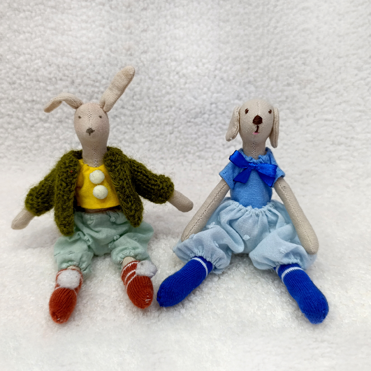 Моим творческим экспериментом стали собачка «Лайка» и зайчик «Тишка». Эти очаровательные создания сшиты из бязи, а их милые личики украшены вышивкой. Они уже принарядились и готовы покорять сердца! Как вам? Куклы и животные, созданные нашими умелыми руками, не рождаются с именами. Но как только я беру их в руки, то уже знаю как их называть.