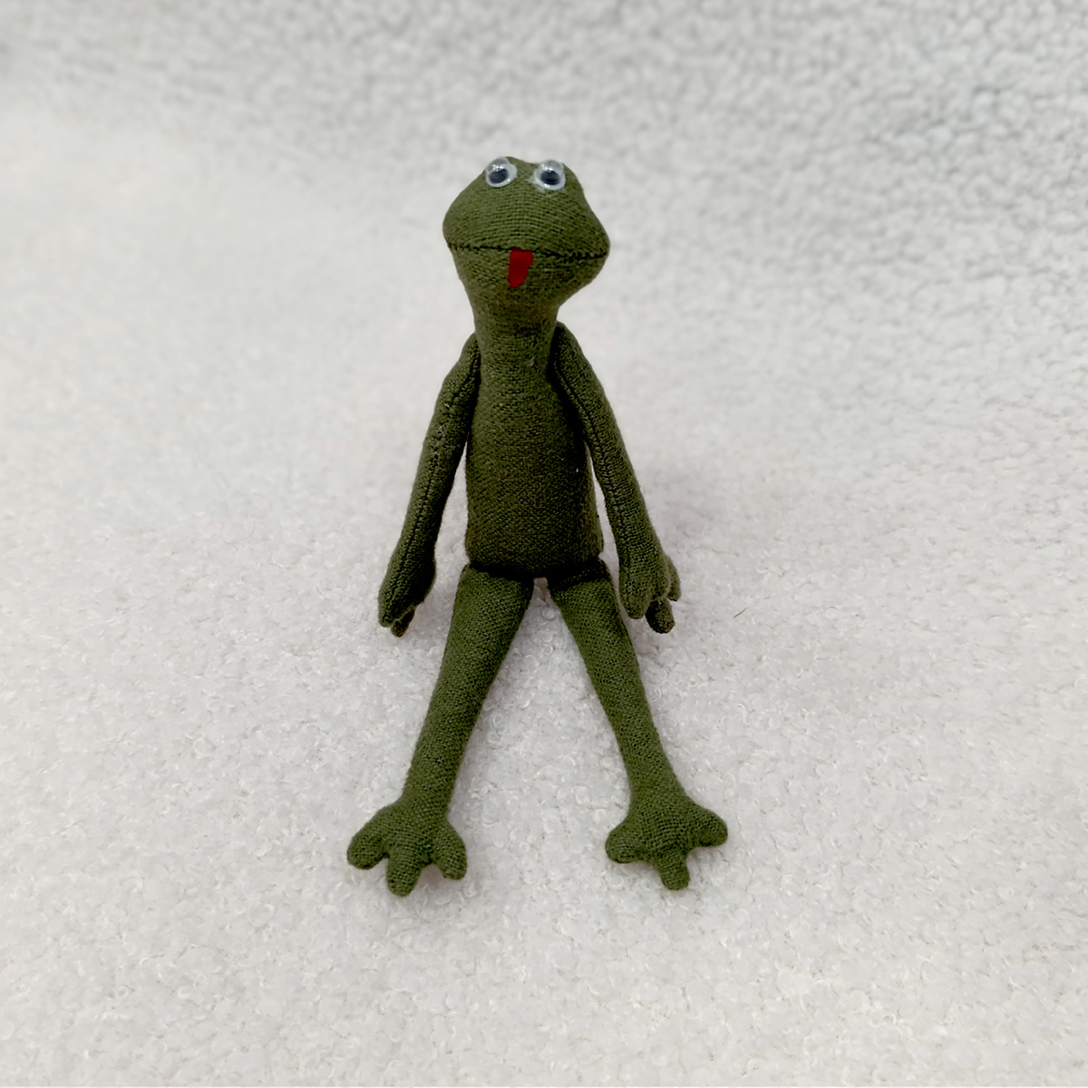 Знакомьтесь со следующим персонажем - лягушка "Квака". Для выразительности я использовала интересные пластиковые глазки. Если её потрясти, то они двигаются. Ну что, я вас сподвигла пошить игрушки в стиле Tilda?