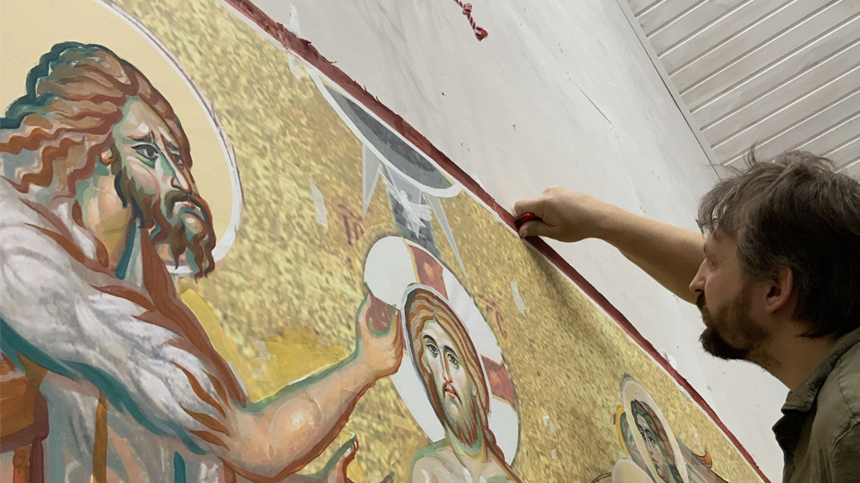 Знаменщик решает, как будет выглядеть образ, адаптирует его под формат работы. Например, один и тот же сюжет «Крещение Господне» может быть выполнен горизонтально или вертикально.