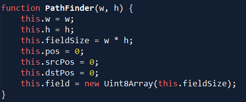 Для конструктора нужны ширина и высота поля. Кроме того, он хранит атрибуты начальной и конечной клеток srcPos и dstPos, а атрибут pos отвечает за текущую позицию в пути, когда мы по нему движемся.