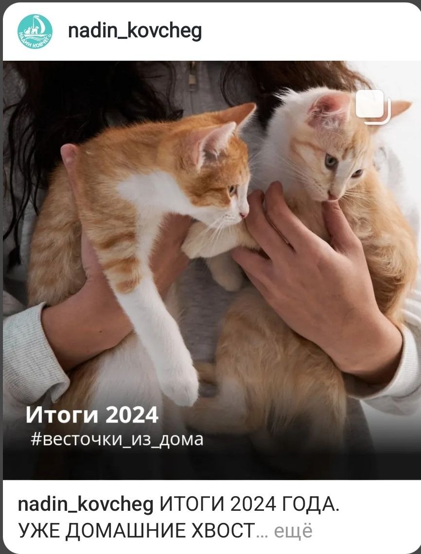 В 2024 году обрели дом и семью 8 хвостиков. 🐈 котик Томас ( Монти)- дома с февраля, живёт в Екатеринбурге. 🐈 котик Толя- дома с марта, живёт в Екатеринбурге. 🐈 котик Максик- дома с марта, живёт в Верхней Пышме. 🐈 кошечка Василиса ( сестричка Толи и Максика)- дома с апреля, живёт в Екатеринбурге. 🐕 пёс Малыш- дома с апреля., живёт в п. Садовый. 🐕 пёс Арни- дома с августа, живёт в Екатеринбурге. 🐈 кошечка Лотос- дома с октября, живёт в Берёзовском. 🐈 котик Принц ( братик Лотос)- дома с ноября, живёт в Верхней Пышме. Мы очень рады за этих хвостиков!💓 Посмотрите, какие они стали- просто загляденье! 🤗 А остальные жители "Ковчега" ждут своих заботливых и ответственных хозяев. В "Ковчеге" живут кошки и собаки разных возрастов ( от подростков до очень взрослых), разных размеров, темпераментов и окрасов.🐾🐾🐾 Приезжайте знакомиться! А вдруг какой-то хвостик ждёт именно вас?😃 Звоните Надежде: 📞+7 953 383 84 72 договаривайтесь о времени и приезжайте! #жители_ко