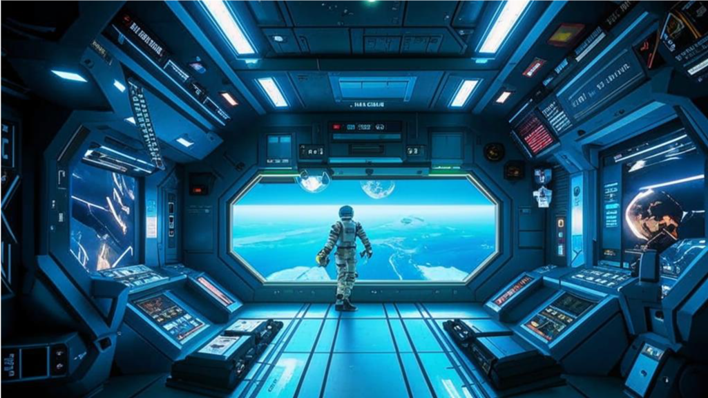- Включите фоновую музыку в стиле sci-fi.