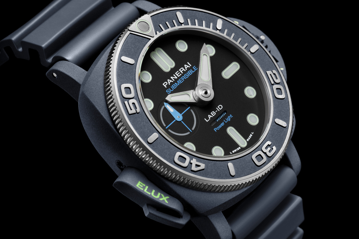 Конечно, часы Panerai Submersible Elux LAB-ID, как и принято у этого бренда, подходят для глубоководных работ — в них можно погружаться на глубину до 500 метров. Благодаря подсветке и увеличенным стрелкам (в том числе из-за светодиодов) исследовать тёмные глубины становится гораздо удобнее, особенно когда эти внушительные часы закреплены на синем каучуковом ремешке с титановой пряжкой.