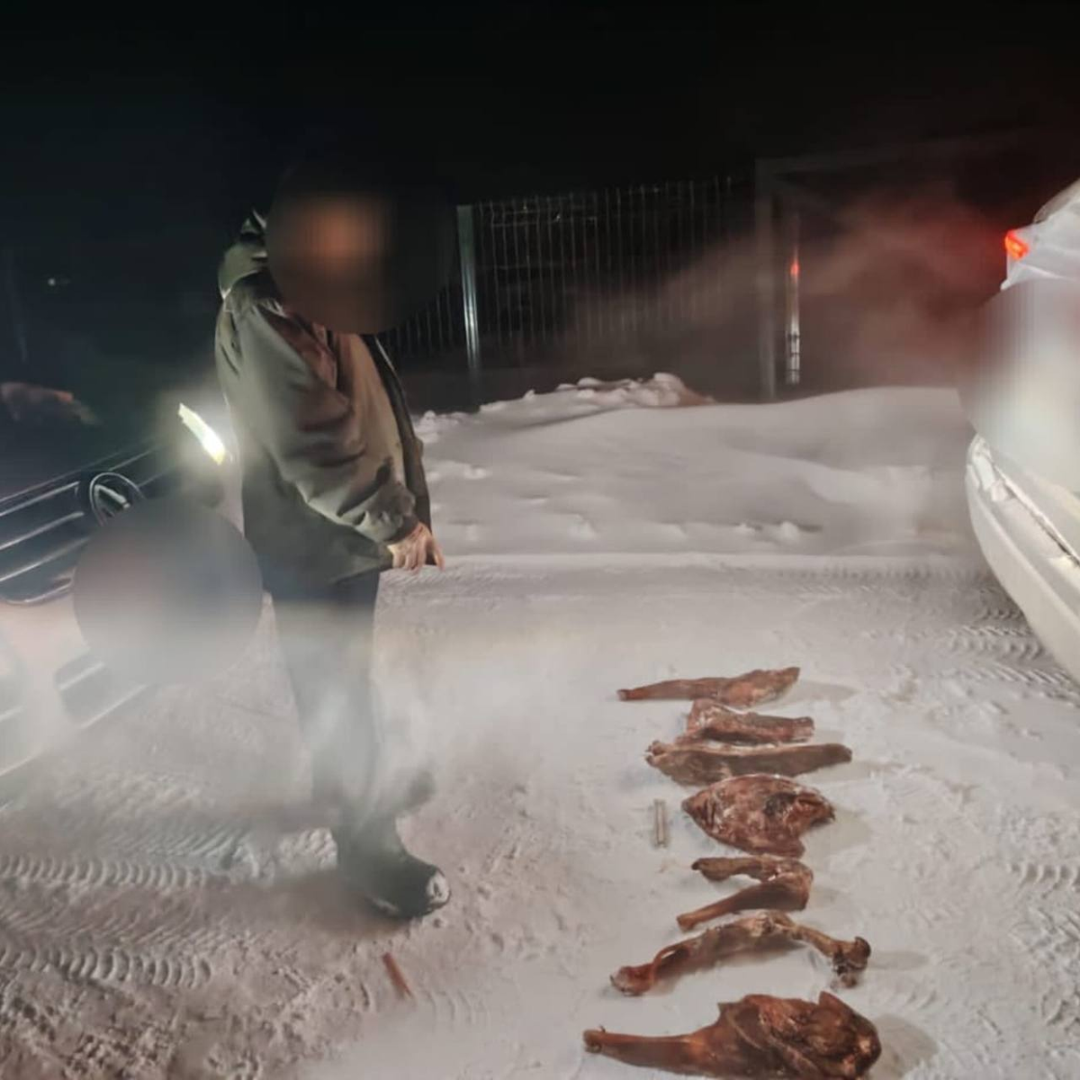 На место происшествия незамедлительно прибыла следственно-оперативная группа. Полицейские проследили путь, оставленный снегоходом и следами крови животного, который привел их к дому жителя одного из близлежащих сел.
