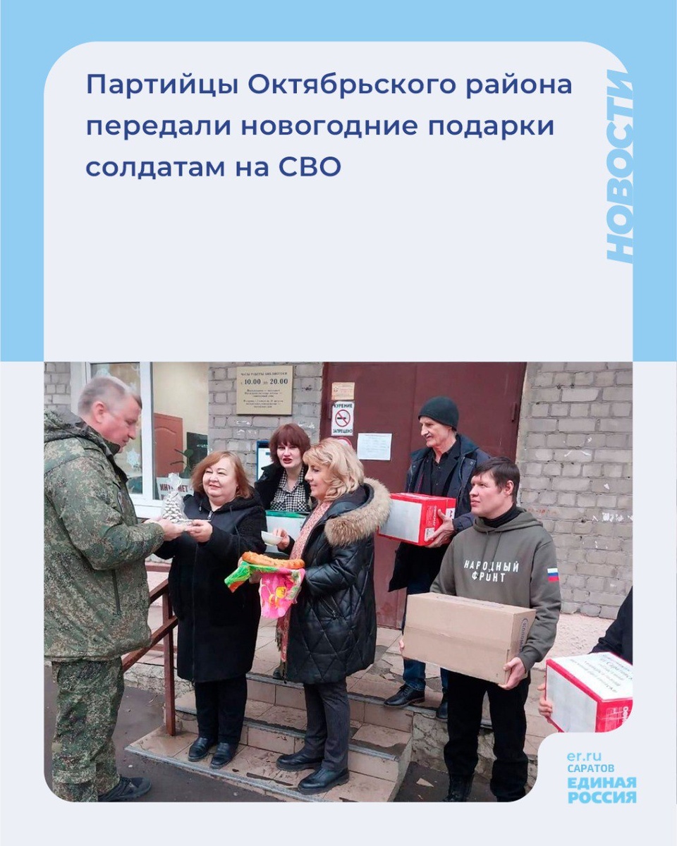 💬«Попросили начальника штаба саратовского полка Анатолия Шостака передать нашим саратовским ребятам самые тёплые поздравления с Новым Годом и Рождеством! Анатолий Владимирович выразил уверенность, что нашим бойцам будет радостно открыть эти коробки и ощутить тепло из дома, где их помнят, любят и ждут. Ведь для каждого защитника подарок с родной земли — это порция душевного домашнего тепла, которая для них очень важна», - поделилась Ирина Видина.